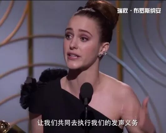 而2018年1月,在該劇斬獲第75屆金球獎最佳劇集、最佳女主的頒獎典禮現場,熱點不再是紅毯上女星們爭奇鬥豔的著裝——全員黑禮服形成的一片黑海見證著#Me Too運動在好萊塢引起的新一波滔天巨浪。